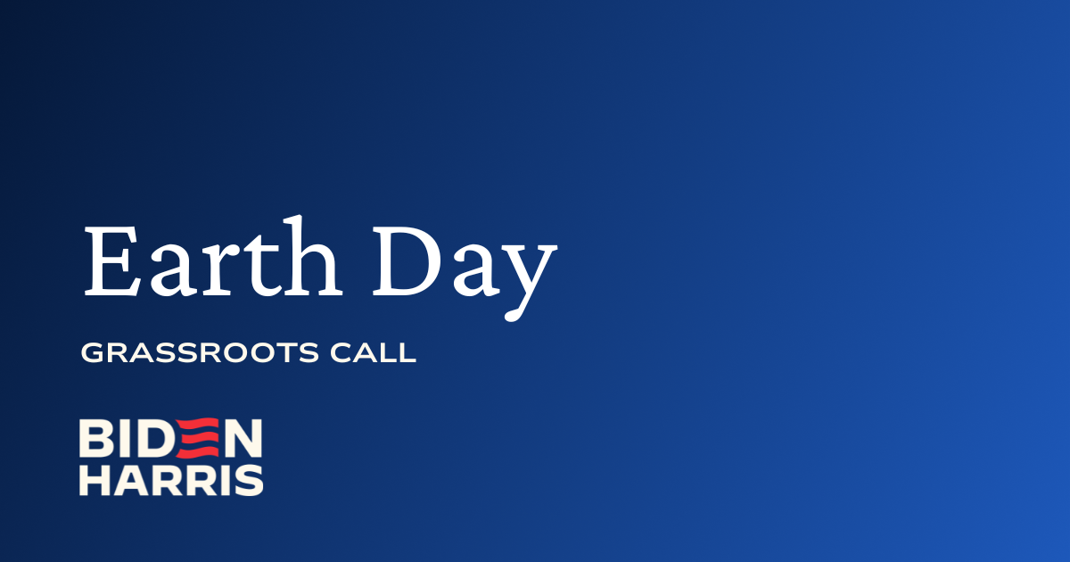 On Earth Day, please join the Biden for President Campaign for an Earth Day Grassroots Call featuring Gina McCarthy, former Administrator of the Environmental Protection Agency, Representative Ayanna Pressley, and Senator Brian Schatz.